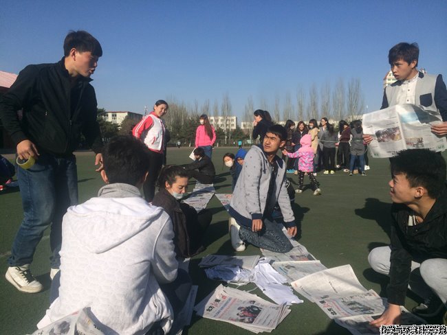 2015年4月16日下午4:30,在赛罕校区东操场开展了“三走”主题系列活动之一:无敌风火轮游戏。活动由学院团总支书记宝贵老师主持,学校团委副书记许琳老师、学院党总支副书记王凤岐老师和部分兄弟院系团总支老师莅临现场指导和观摩了活动全过程。活动分游戏和讨论两个环节:游戏环节中由2014级蒙班和2012级材料班分别以12人为一组,利用报纸和胶带制作一个可以容纳全体团队成员的封闭式大圆环,将圆环立起来,全队成员站到圆环上边走边滚动大圆环,直到终点。讨论环节中同学们都踊跃发言,分享心得体会并互相学习和鼓励。