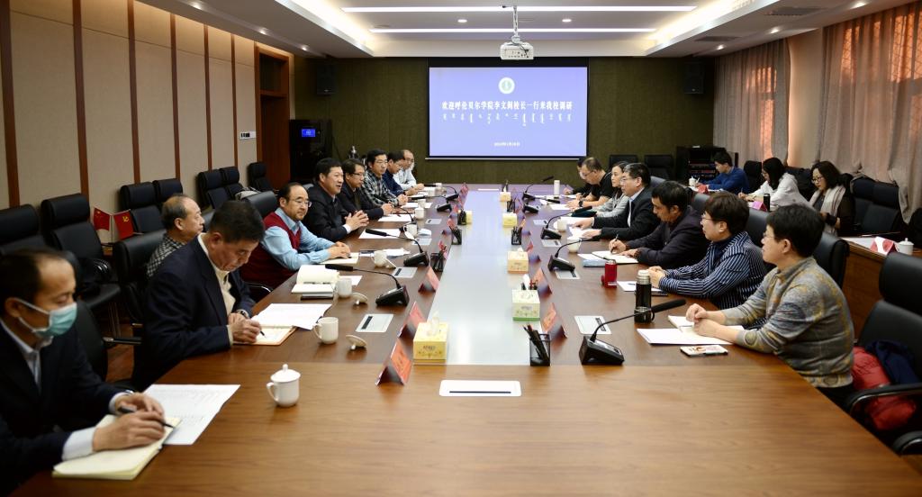 本网讯 1月20日,呼伦贝尔学院党委副书记、校长李文阁,党委委员、副校长敖特根一行13人来校调研,与我校副校长刘九万、宫箭及相关部门、学院负责同志在赛罕校区文史楼二号会议室进行座谈交流。