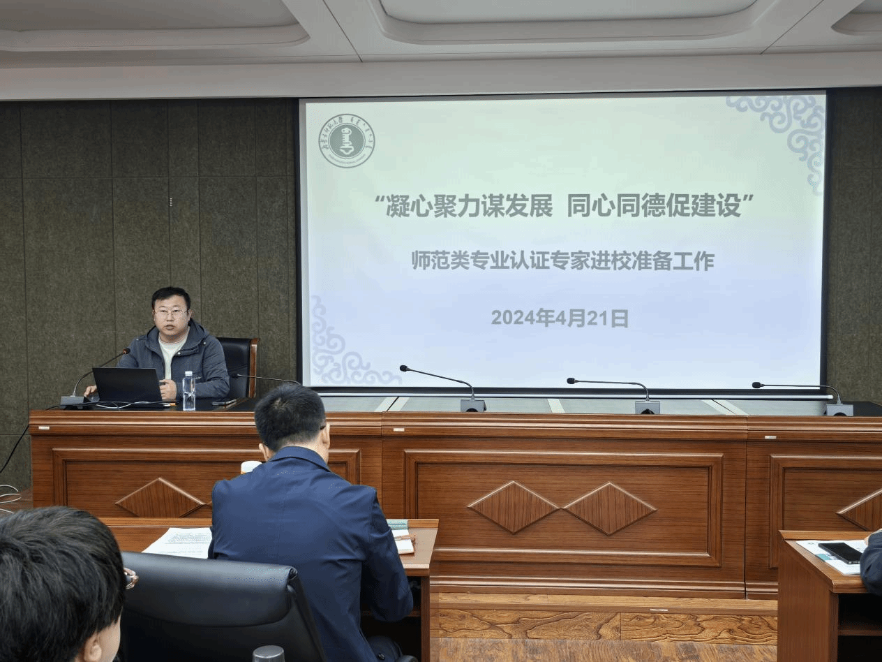 为有序推进马克思主义学院思想政治教育专业师范认证工作,我院于4月21日下午在文史楼1号会议室召开专家进校筹备会议,邀请历史文化学院副院长白林进行师范类专业认证工作经验分享。马克思主义学院全体教师参加会议,钢特木尔副院长主持会议。